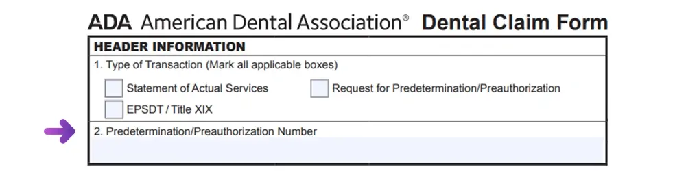 Go ahead and treat the patient, and after that, when you fill out your claim form, enter the payer’s provided pre-authorization number in Field No. 2 in the ADA Dental Claim Form.