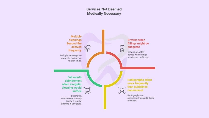 Most dental insurance plans limit how frequently certain procedures can be performed and covered. Submitting claims for services performed before the allowed time period has elapsed results in predictable denials.